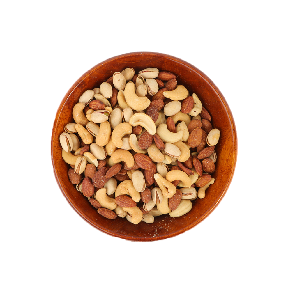 Plain Royal Mixed Nuts are a distinctive mixture of various types of natural nuts, where several different types are combined together to provide a varied and delicious mixture. This mixture usually includes ingredients such as almonds, pistachios, walnuts, hazelnuts, and peanuts, with the possibility of adding some dried fruits such as raisins or cranberries to add additional flavor.